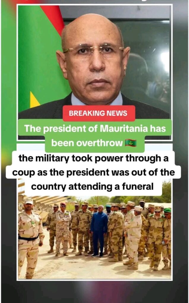 President Mohammed Ould Ghazouani was removed from office in a military COUP a couple of hours ago.