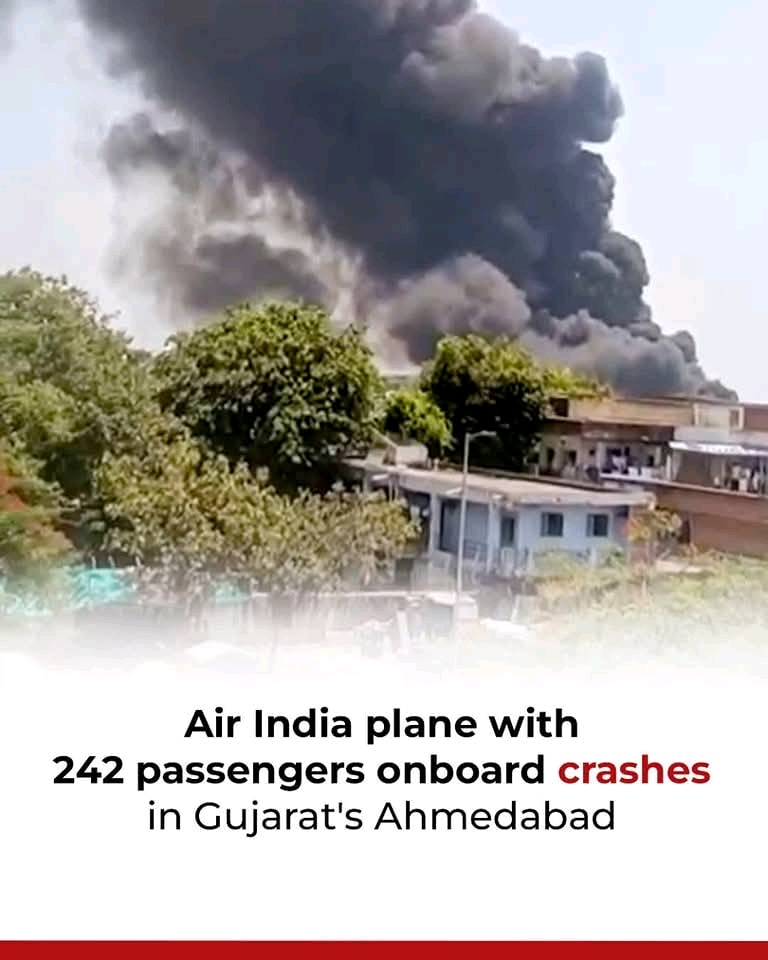 • An Air India flight ✈ A1171 en route to London an hour ago with 242 passengers on board has crashed into a residential area in Meghaninagar close to the Ahmedabad Airport.