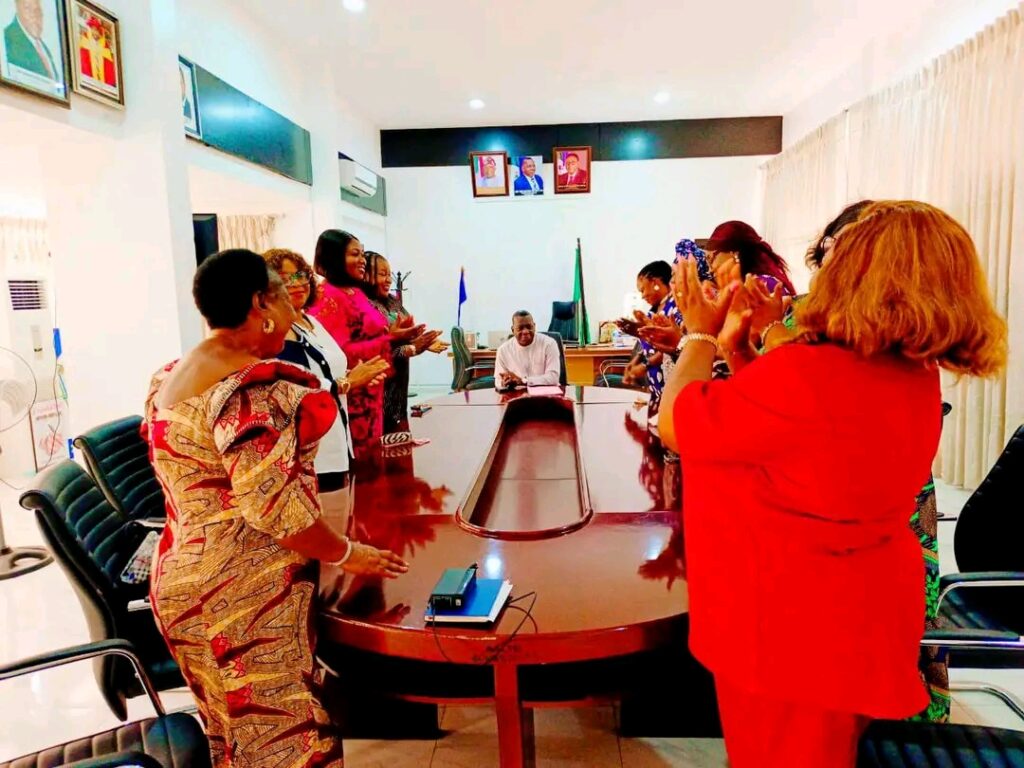 The Commissioner for Education, Sen. Professor Stephen Odey, Esq., on Thursday, received members of the Team Mma-Adiaha Solidarity Movement, Northern Senatorial District, on a courtesy visit to his office at the Ministry of Education Headquarters in Calabar. The delegation was led by the Coordinator of the movement and Honourable Commissioner for Sports, Hon. Agnes Atsu.