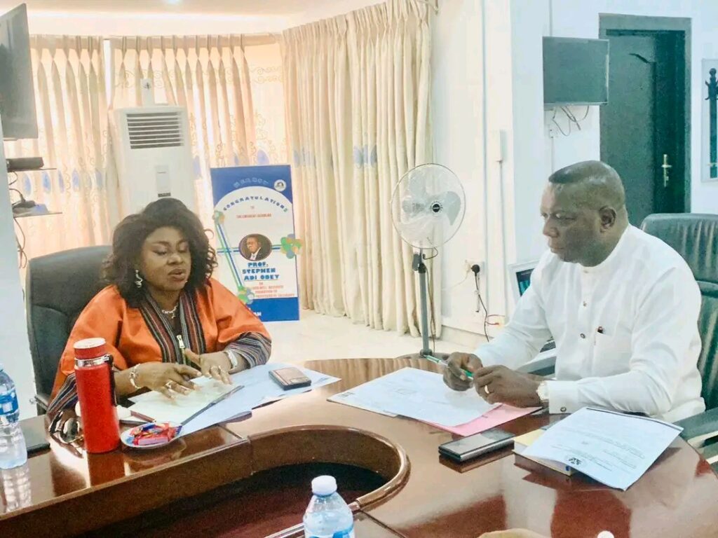 The Cross River State Commissioner for Education, Senator Professor Stephen Odey, Esq., has received the Vice Chancellor of the University of Cross River State (UNICROSS), Professor Francisca Bassey, and her management team on a courtesy visit at the Ministry of Education, Calabar.