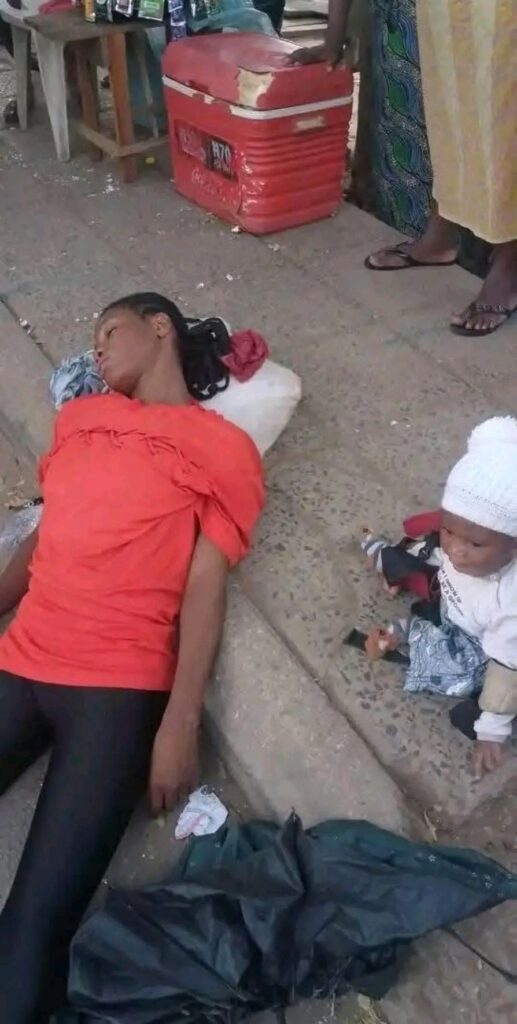 Passerbys reported the incident to the Igando Police Station, and they took her to Alimosho General Hospital, Igando. According to eyewitnesses, the lady was often seen begging for food for her 7-month-old baby, who was with her at the time of the incident. One witness mentioned that she had previously approached a food vendor seeking employment, but was told that she couldn’t be hired with a baby.